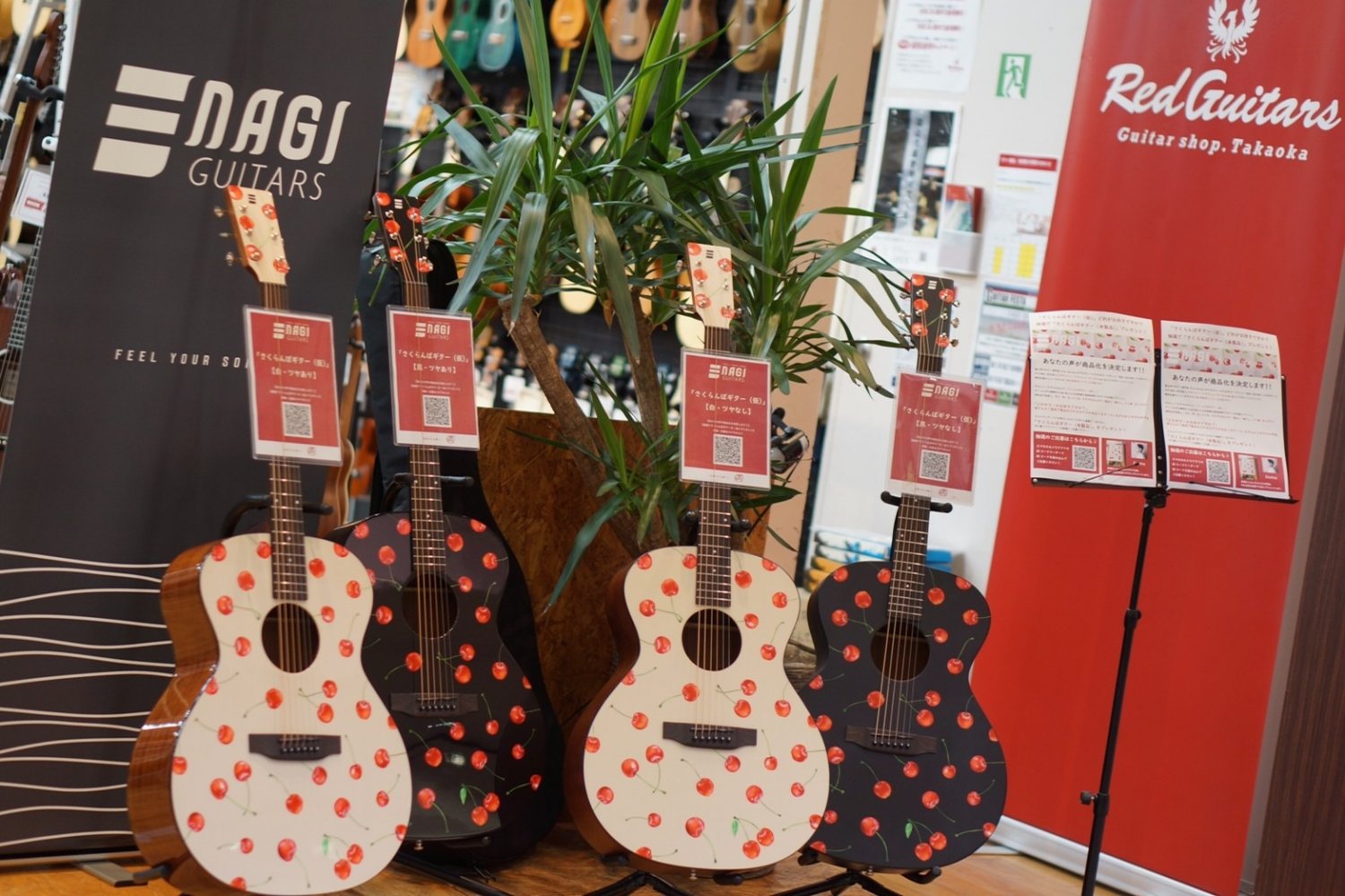 2020年の7月下旬から8月上旬にかけて、イオンモール高岡2階のRed Guitars(楽器センター高岡)にて、当時はまだ「さくらんぼギター(仮)」の名前だった4モデルのプロトタイプを参考展示しました。