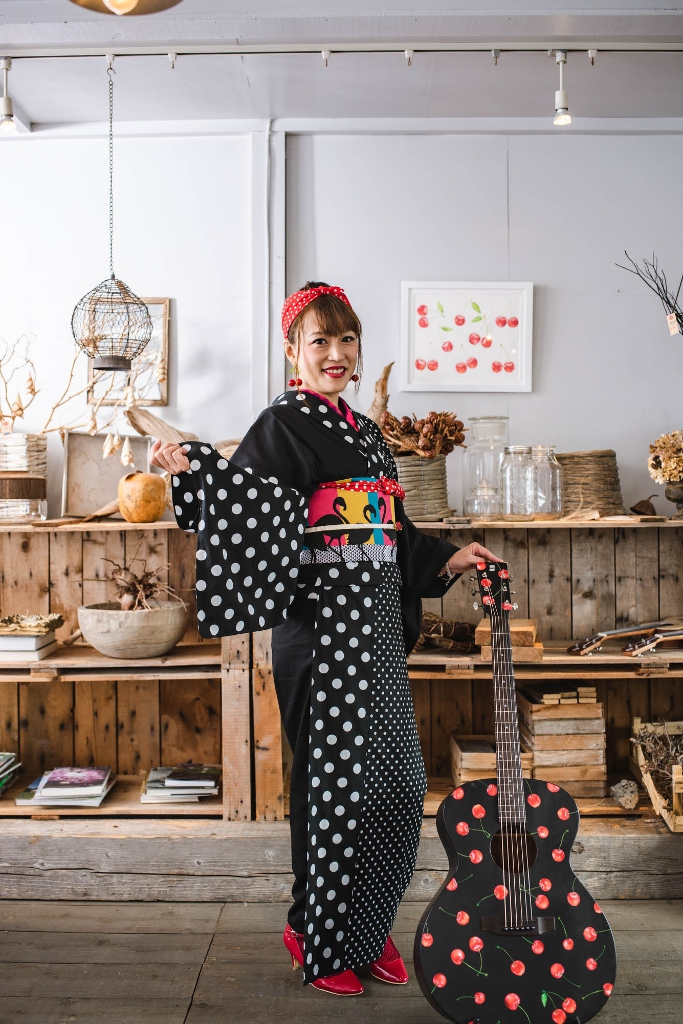 皆さんそれぞれの装いとポーズでさくらんぼギターとの撮影を楽しんでいただきました。