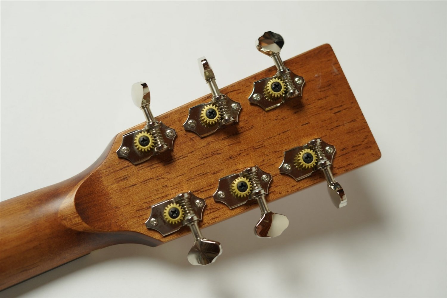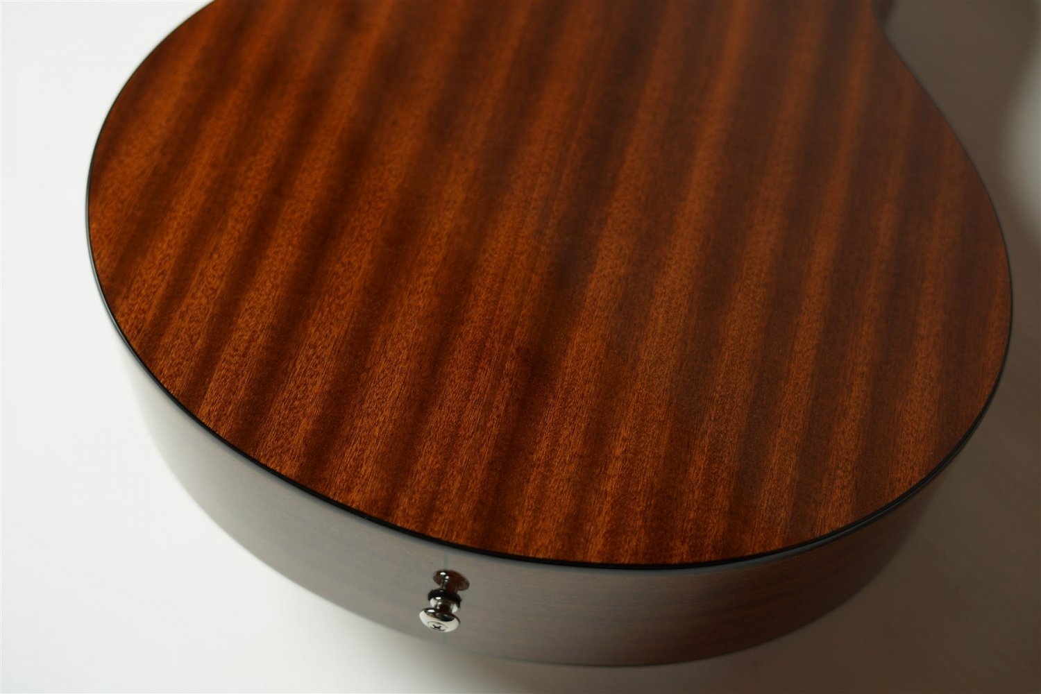 演奏をする上で重要なポイントであるネックは少し細目に手が小さい方でも握りやすく設計しつつも、サウンドのダイナミックさを損なわないように一定の体積は残し、弾きやすさとサウンドを両立させています。木材もアフリカンマホガニーを採用しミドルクラスに引けを取らない仕様。ストラップピンはネックエンドとボディエンドの2点にあり簡単にストラップも着脱可能です。ペグ(糸巻き)はオープンギアタイプを採用しヒストリカルでお洒落に仕上げています。